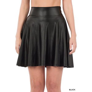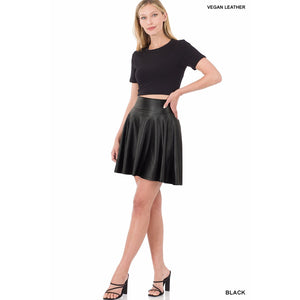 VEGAN LEATHER HIGH WAIST SKATER SKIRT