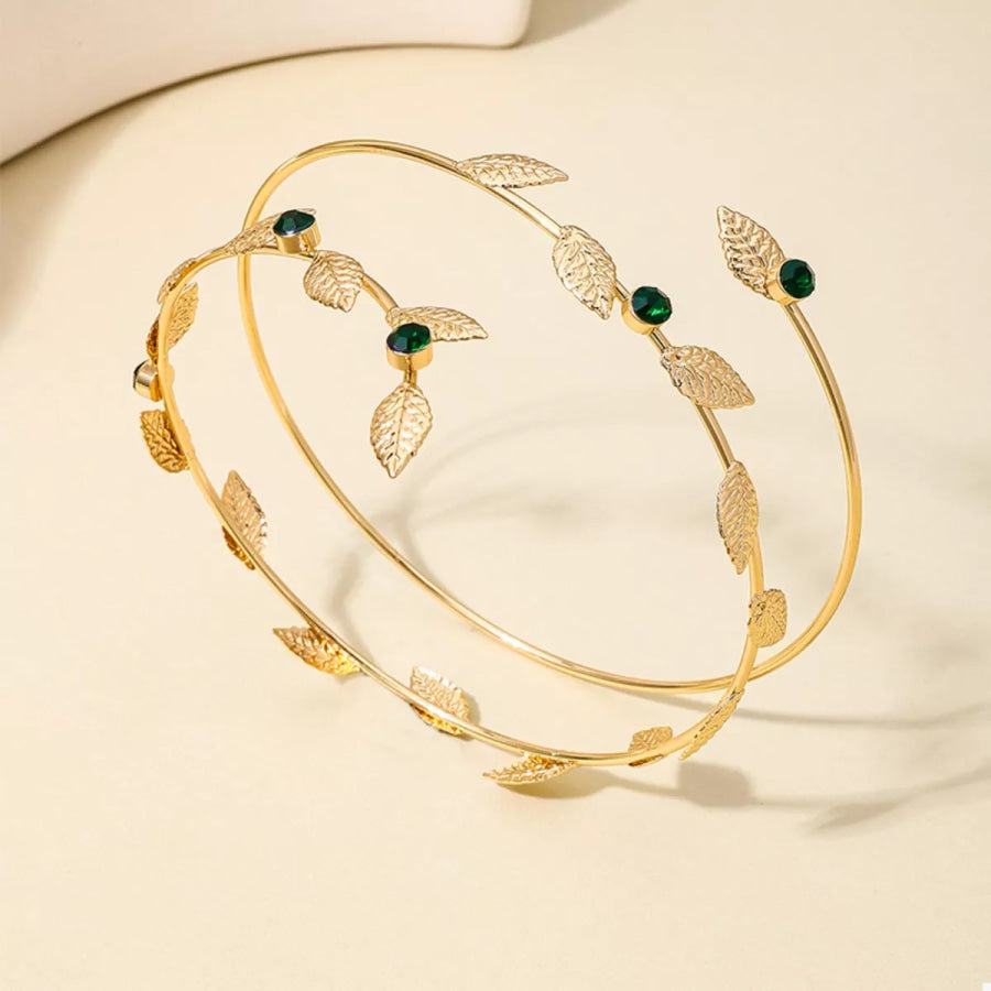 18K Gold-Plated Alloy Rhinestone Leaf Bracelet