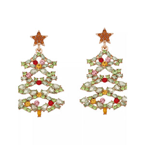 Christmas Tree Earrings with Rhinestones