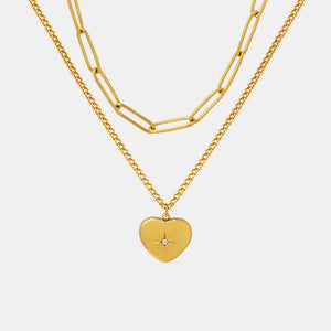 Inlaid Zircon Double Layered Heart Pendant Necklace