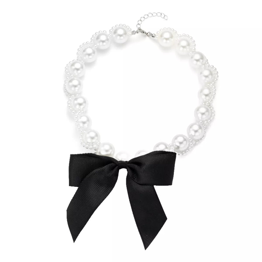 Pearl Choker Necklace with Bow Accent