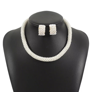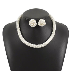 Pearl Embellished Earrings and Necklace Jewelry Set