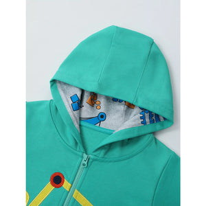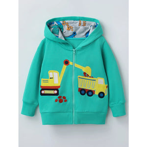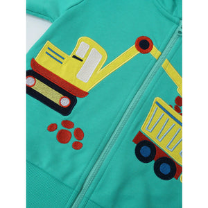 Children's Cartoon Construction Vehicle Zip-Up Hoodie