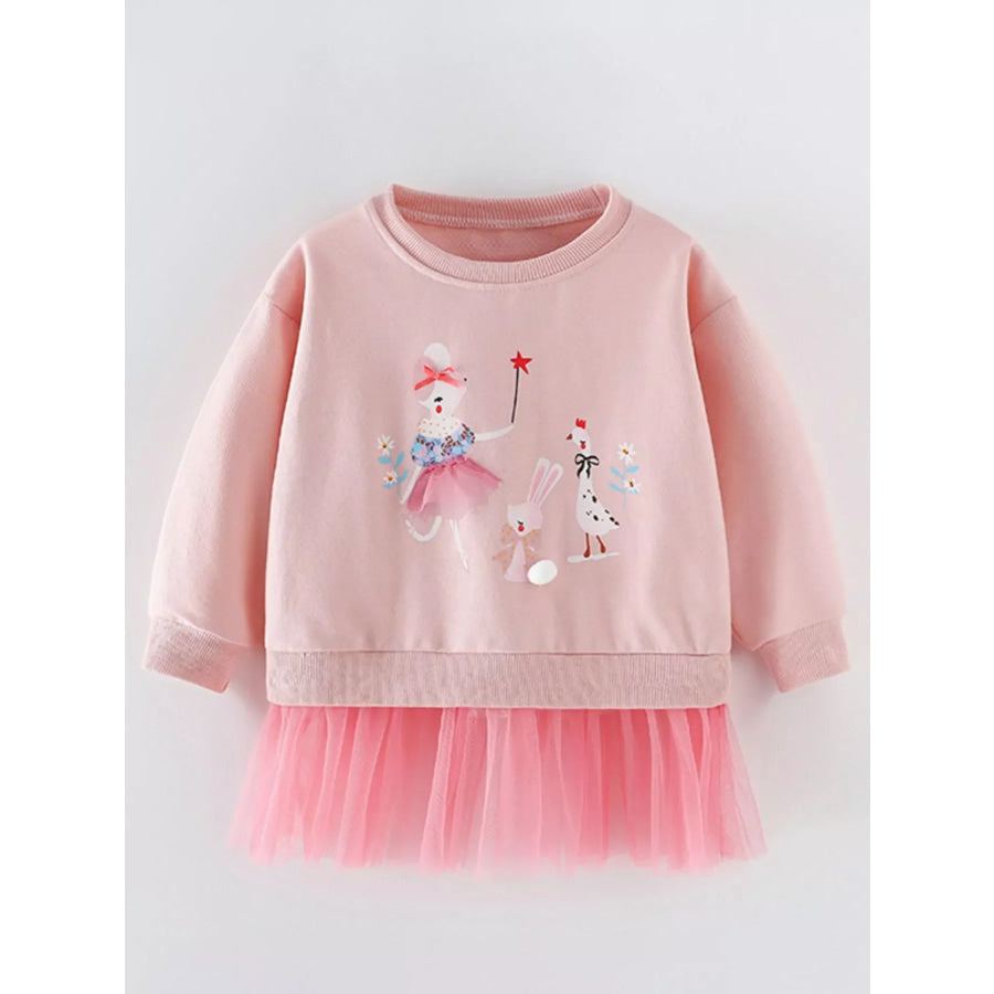 Children's Cartoon Round Neck Tulle Hem Sweatshirt
