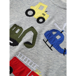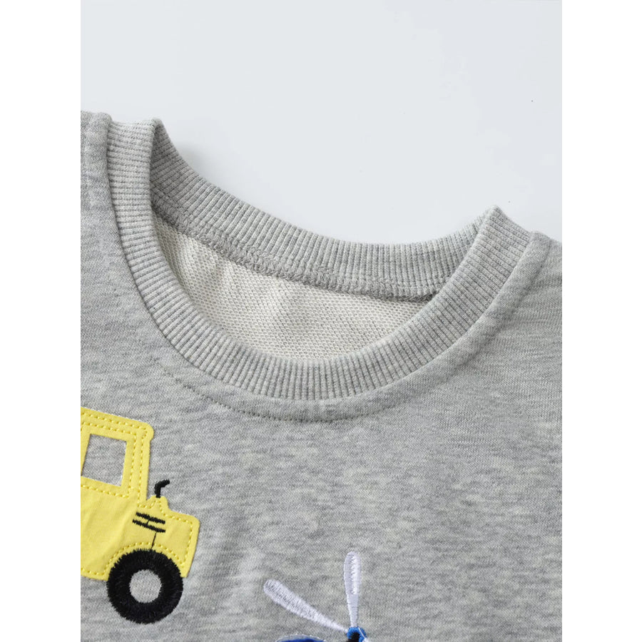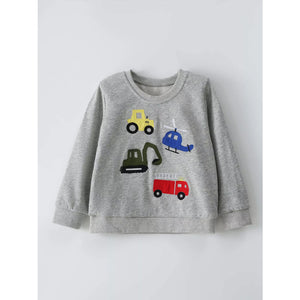 Children's Cartoon Vehicle Graphic Crew Neck Sweatshirt