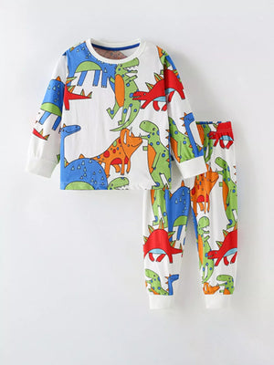 Children's Colorful Dinosaur Print Long Sleeve Top and Pants Set