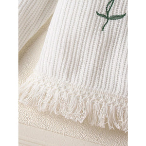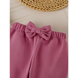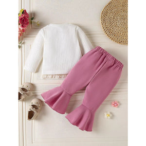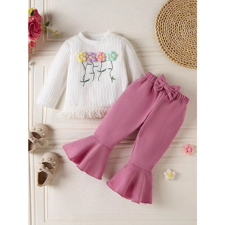 Children's Floral Applique Ribbed Top & Flare Leg Pants Set