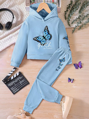 Childrens's Butterfly Print Hoodie & Pants Set