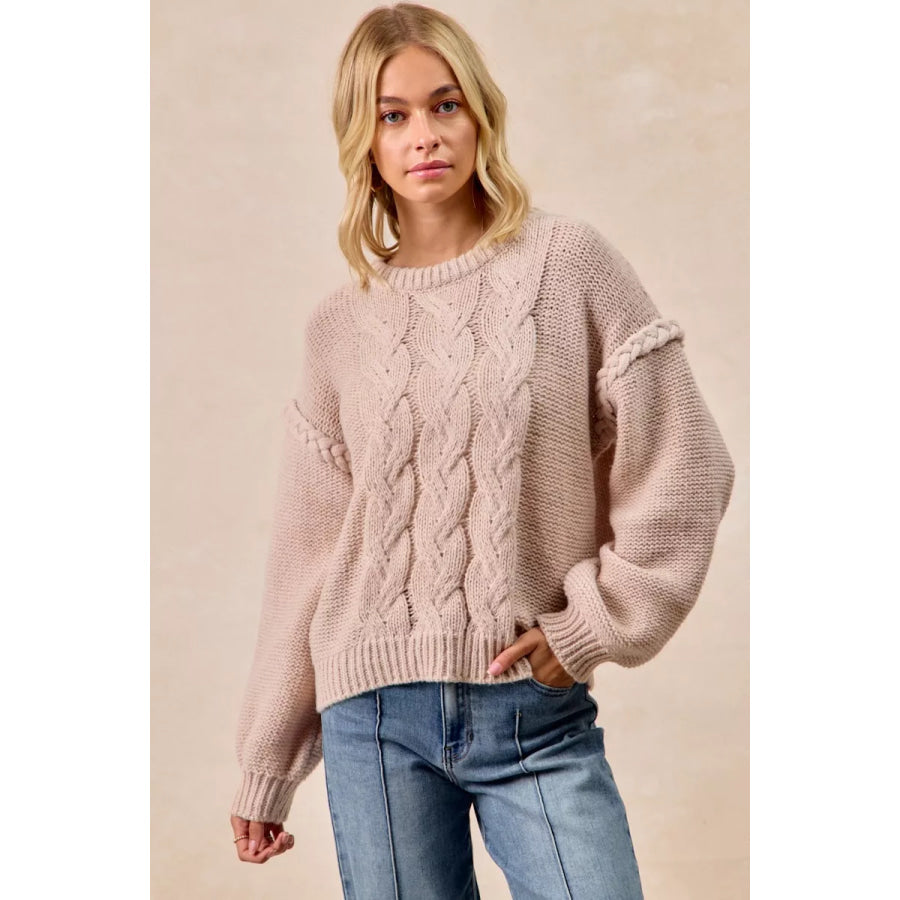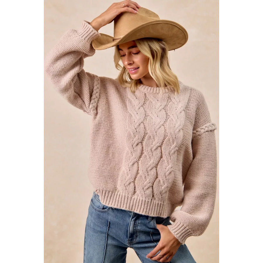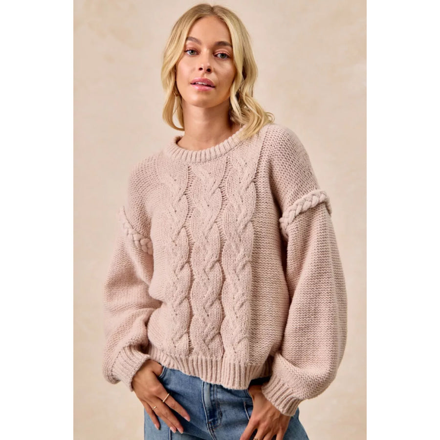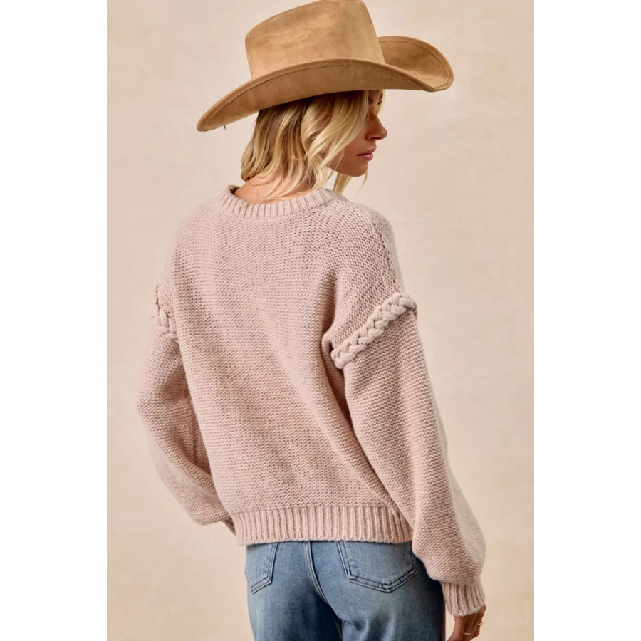 BiBi Cable Knit Sweater with Shoulder Braid Detail