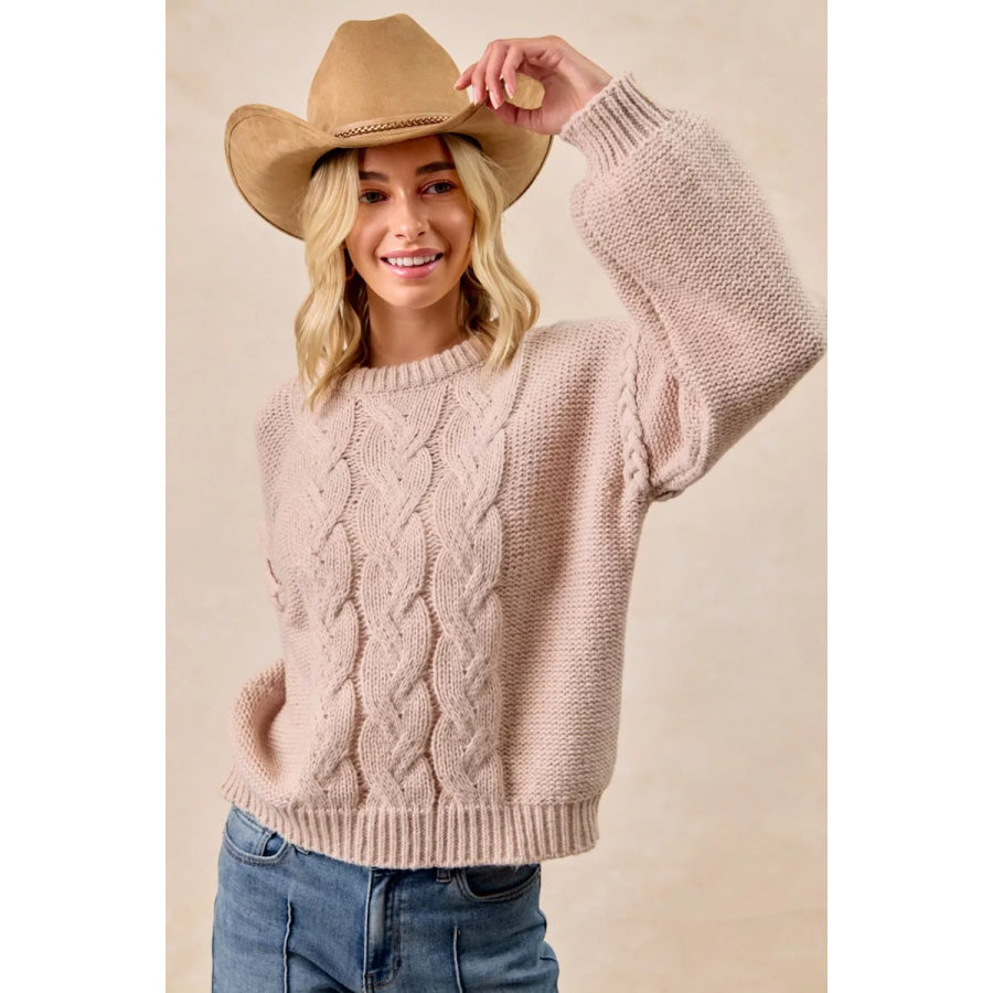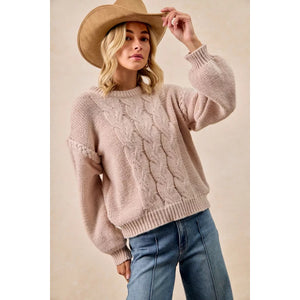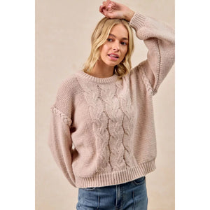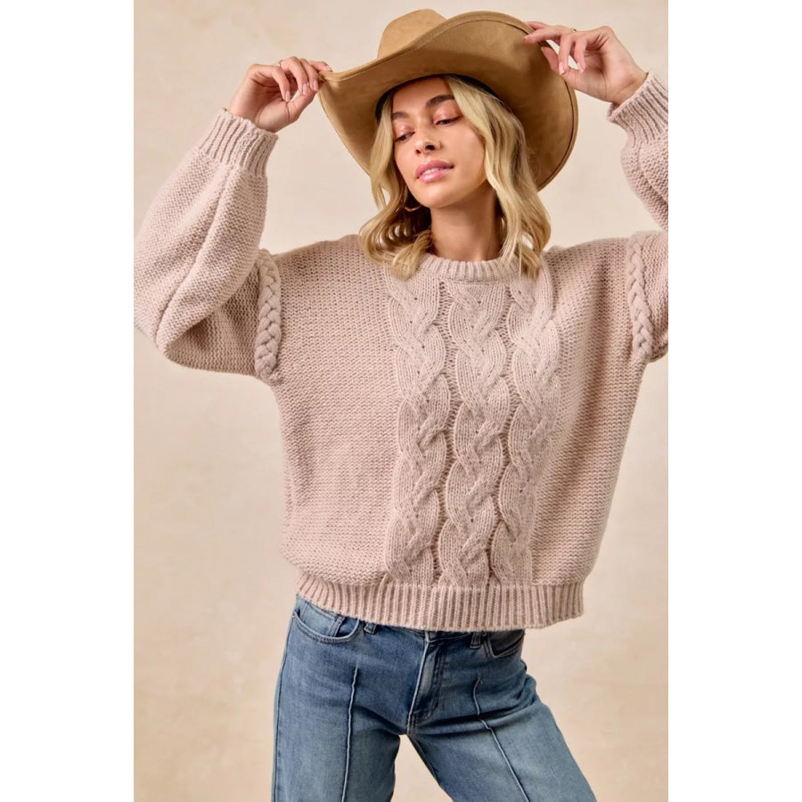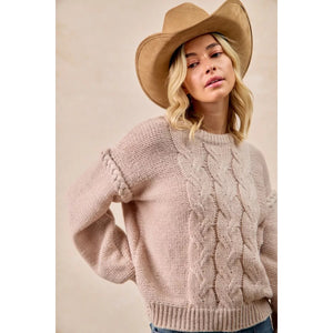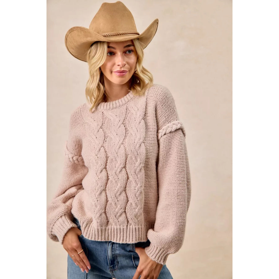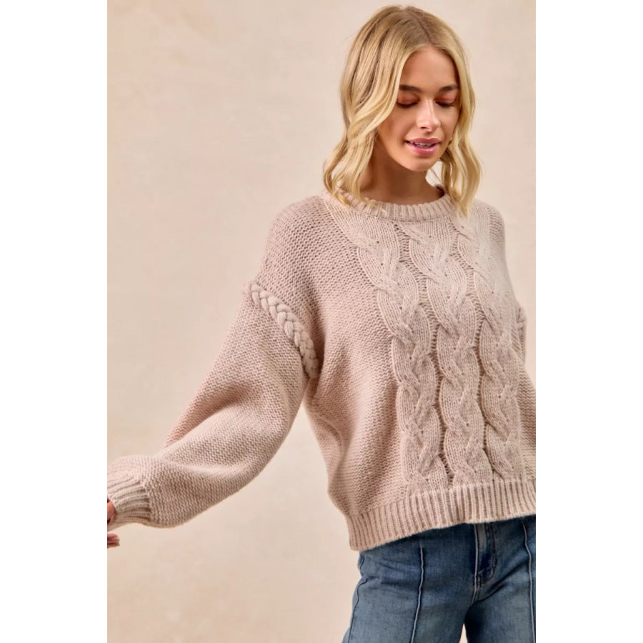BiBi Cable Knit Sweater with Shoulder Braid Detail