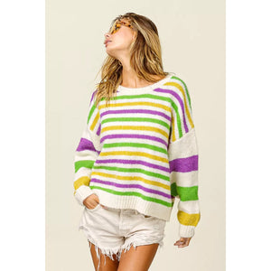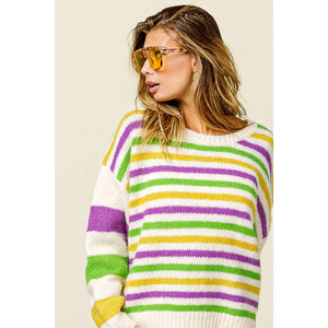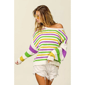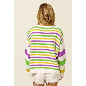 BiBi Mardi Gras Colors Stripe Comfy Sweater