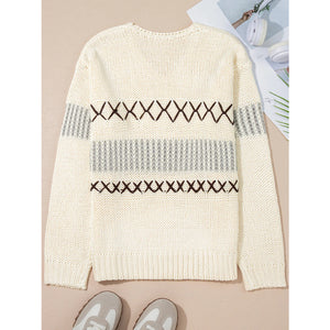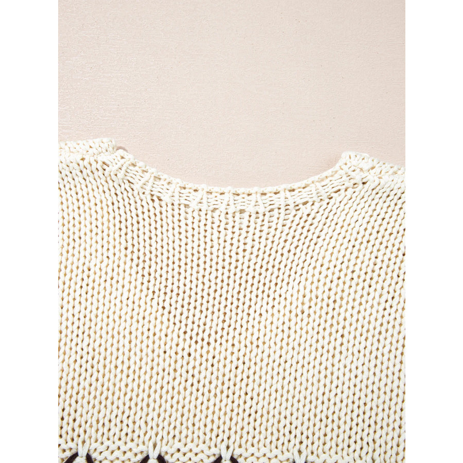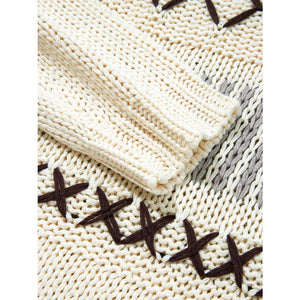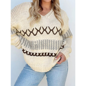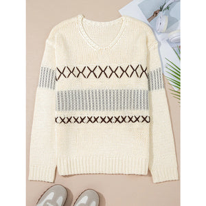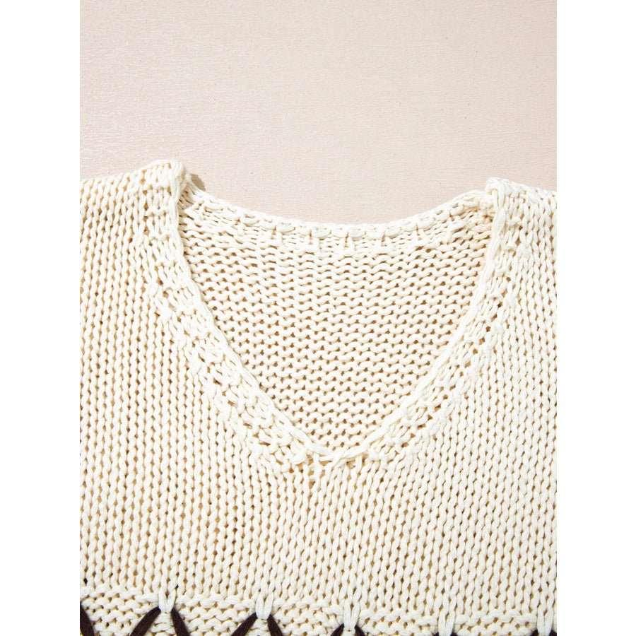 Contrast Stitch Detail V Neck Drop Shoulder Sweater