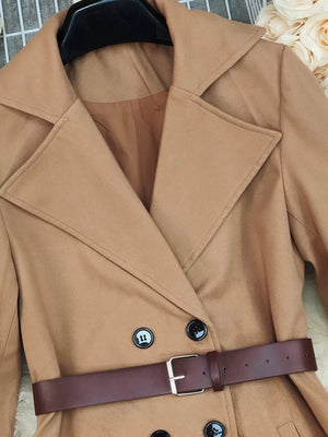 • Features:Pocketed,Double-breasted,Belted