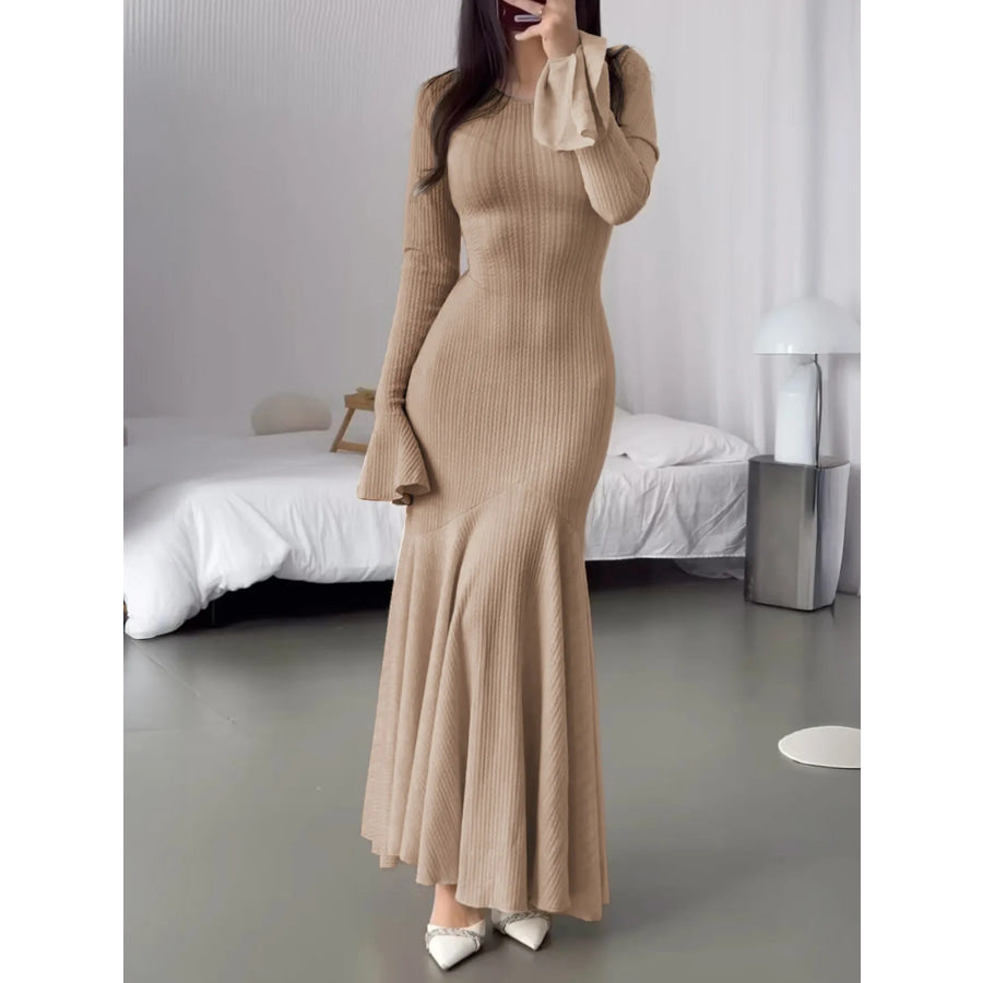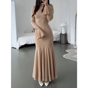 Elegant Ribbed Long Sleeve Mermaid Sweater Dress