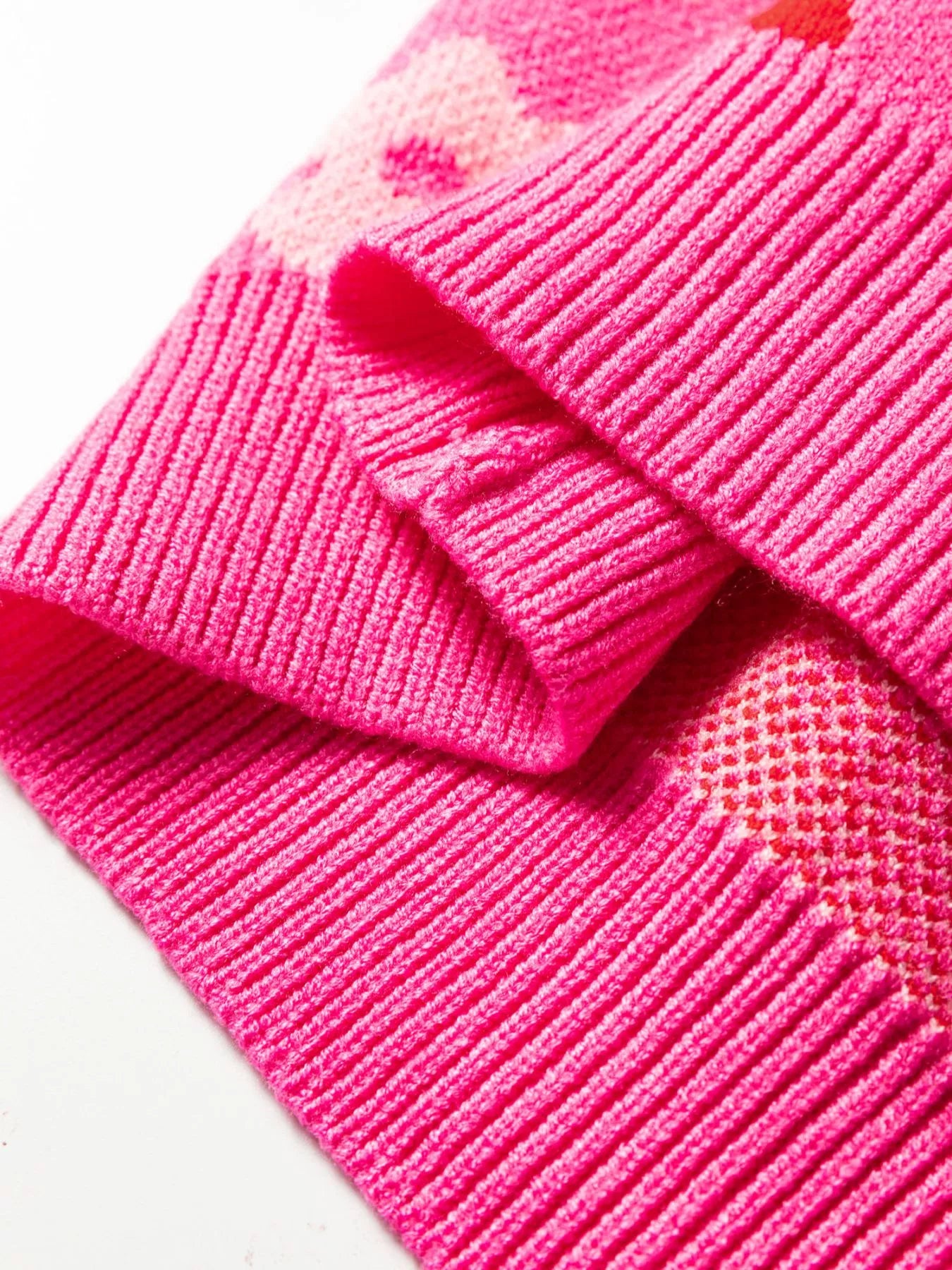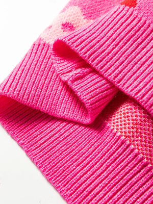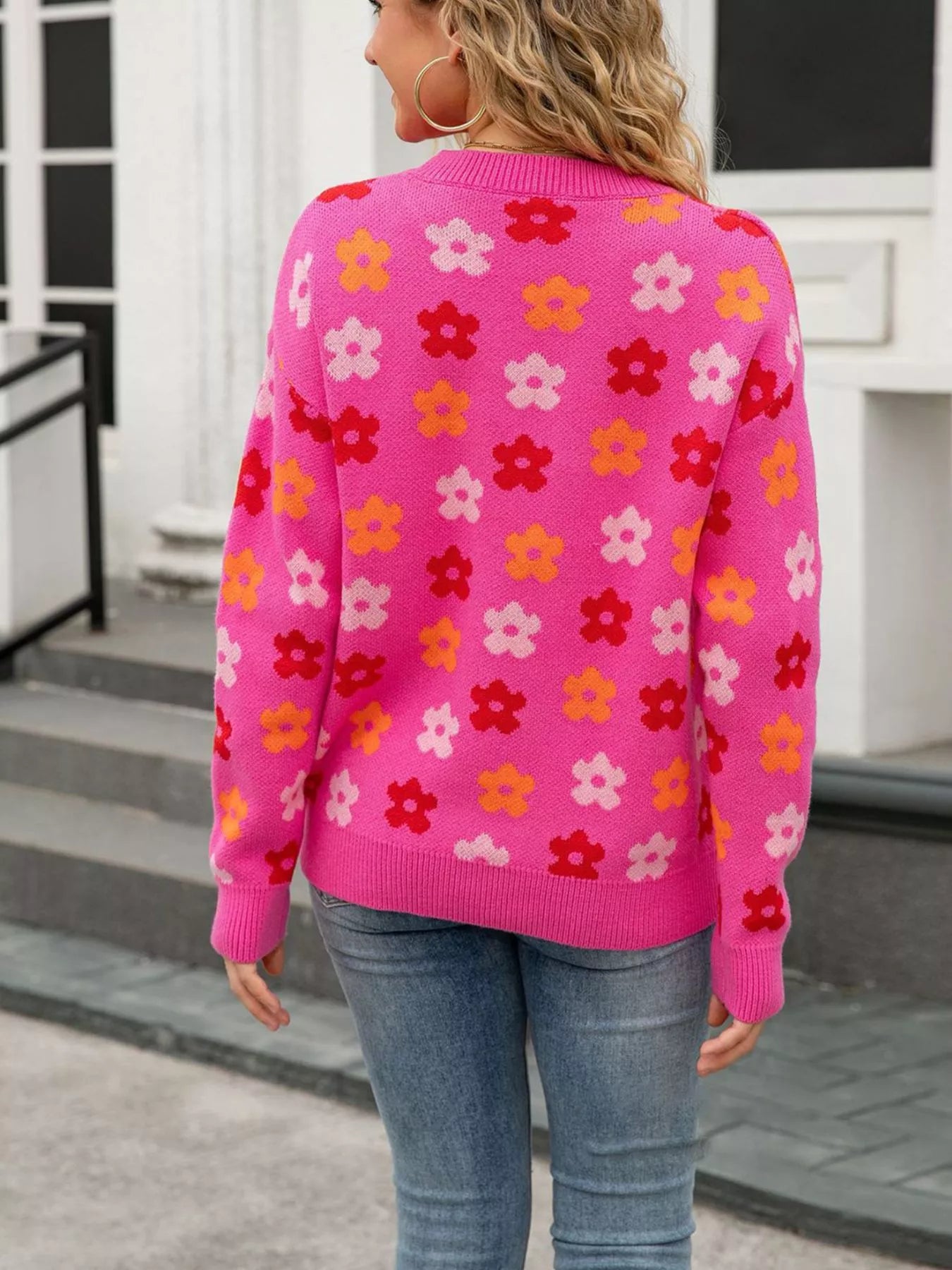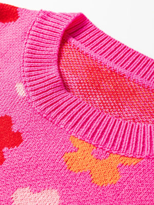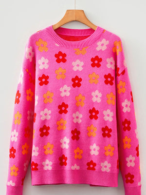 Flower Ribbed Trimmed Drop Shoulder Sweater