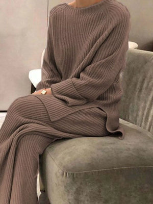 Full Size Ribbed Knit Relaxed Fit Top and Pants Sweater Set Plus Size