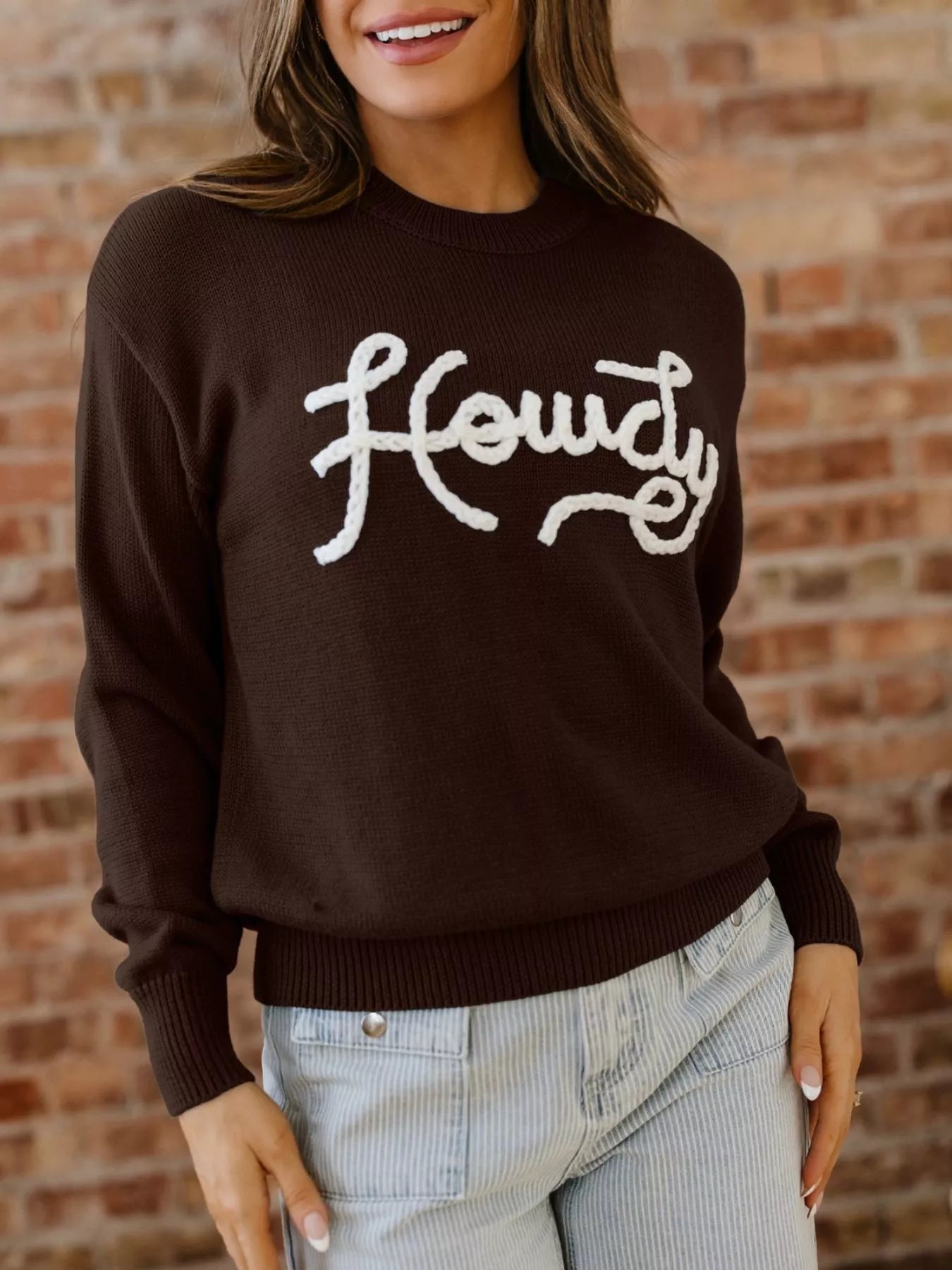 Howdy Embroidered Graphic Western Sweater