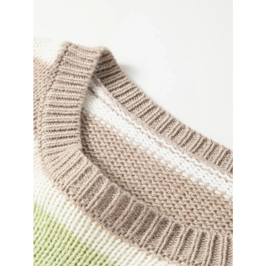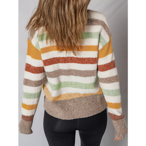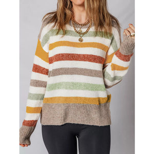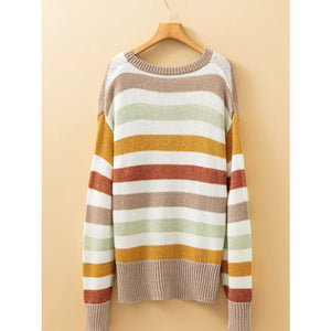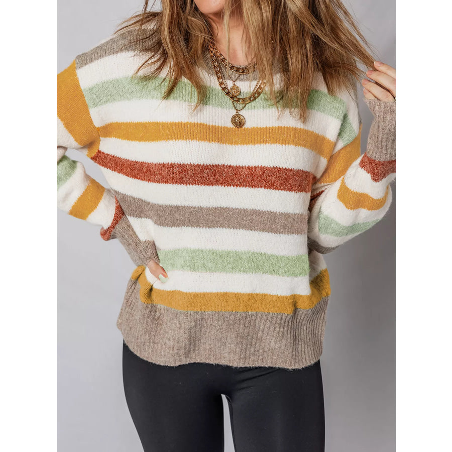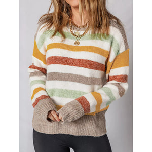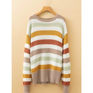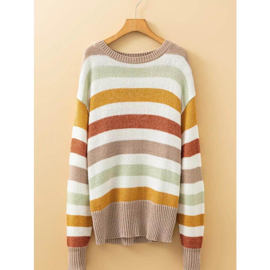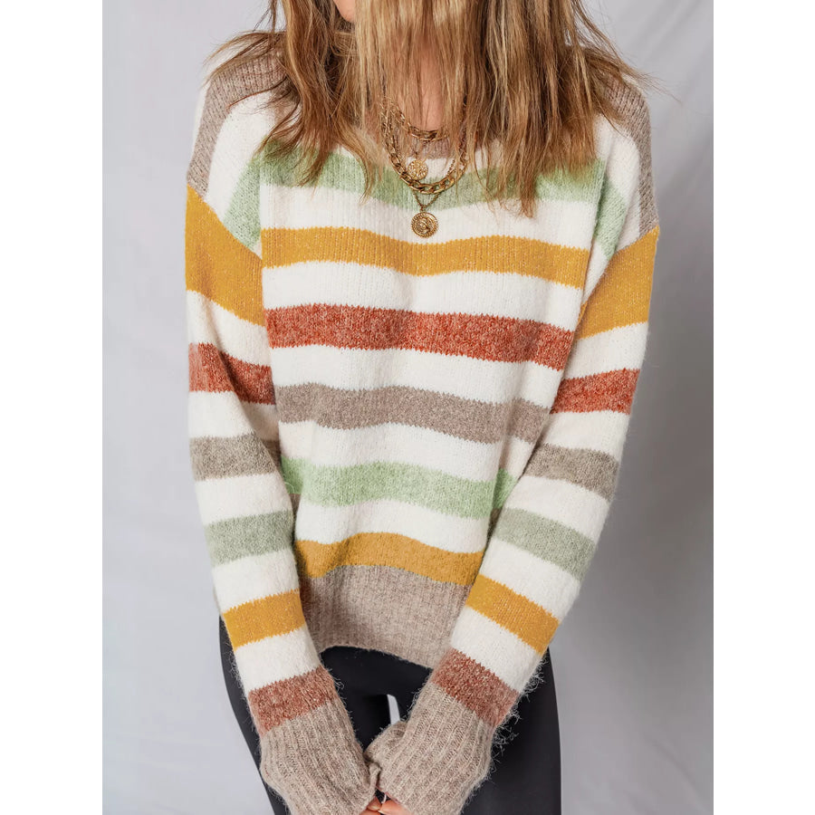 Multicolour Stripe Drop Shoulder Crew Neck Sweater