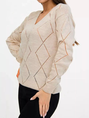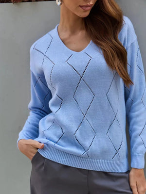 Openwork V-Neck Sweater
