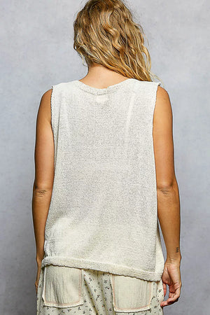 POL Strawberry Pattern Round Neck Sleeveless Sweater Top