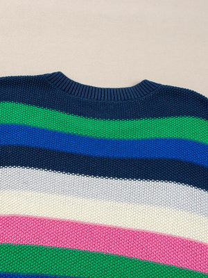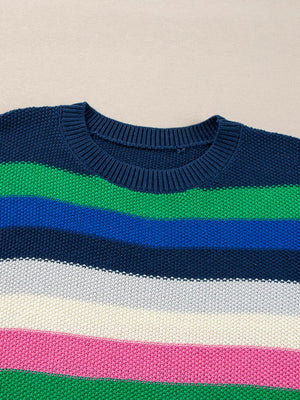 Rainbow Striped Crew Neck Drop Shoulder Sweater