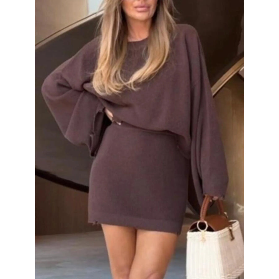 Ribbed Knit Long Sleeve Top and Skirt Sweater Set