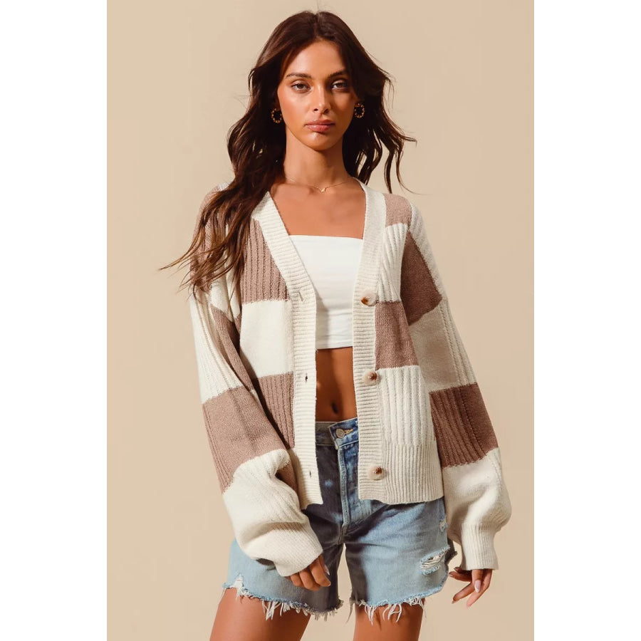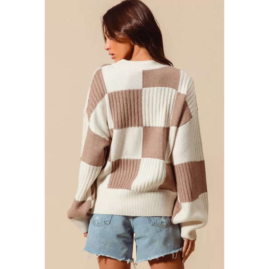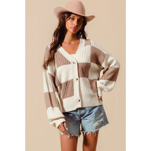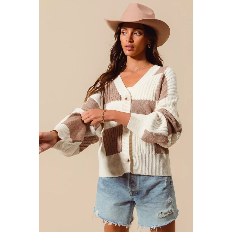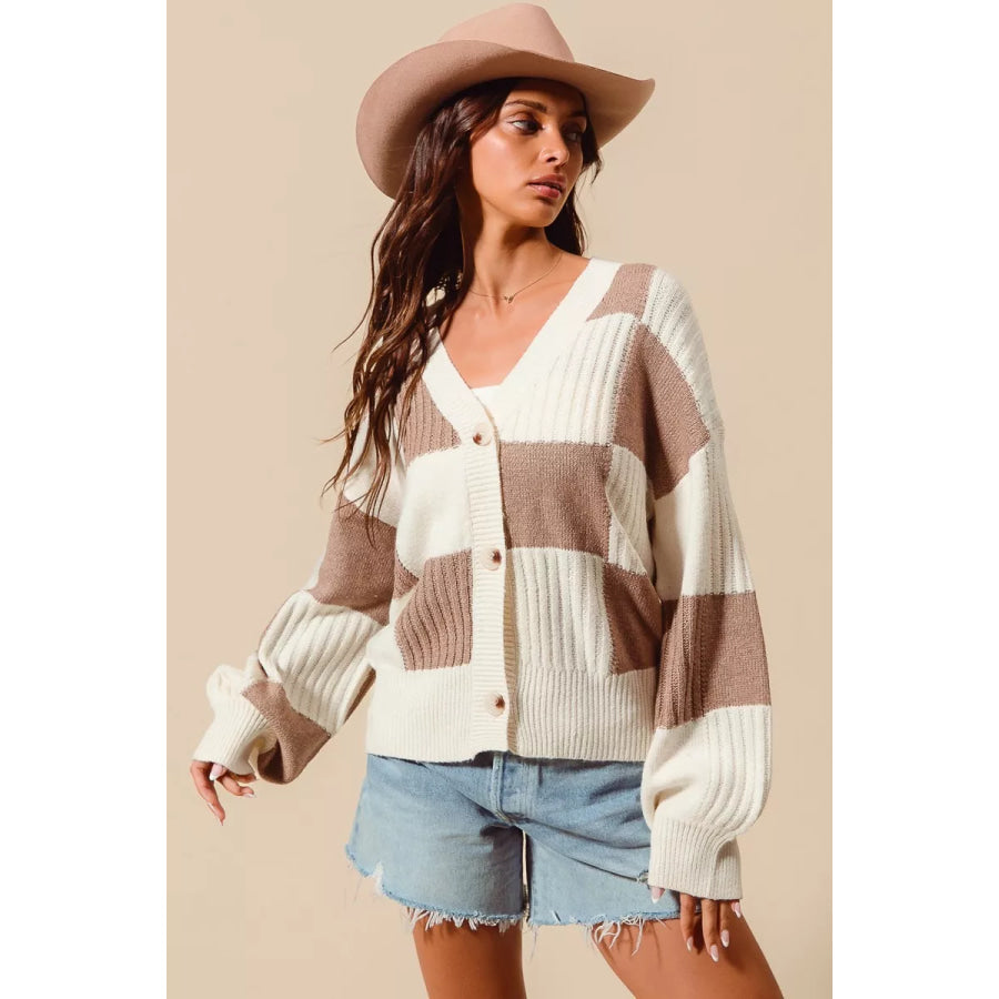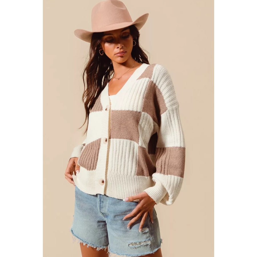 SO ME Checkered Button Front Ribbed Sweater Cardigan