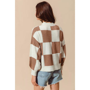 Elevate your winter wardrobe with this Ribbed Color Block Checkered Plaid Sweater, featuring a stylish and playful combination of textures and patterns. The ribbed detailing adds depth and dimension to the design, while the color block checkered plaid creates a trendy and eye-catching look. Stay warm and cozy in this sweater that seamlessly blends comfort with fashion-forward style. Perfect for layering or wearing on its own, this sweater is a versatile and statement-making piece for the season. Make a bold fashion statement with this Ribbed Color Block Checkered Plaid Sweater that will keep you stylish and snug all winter long.