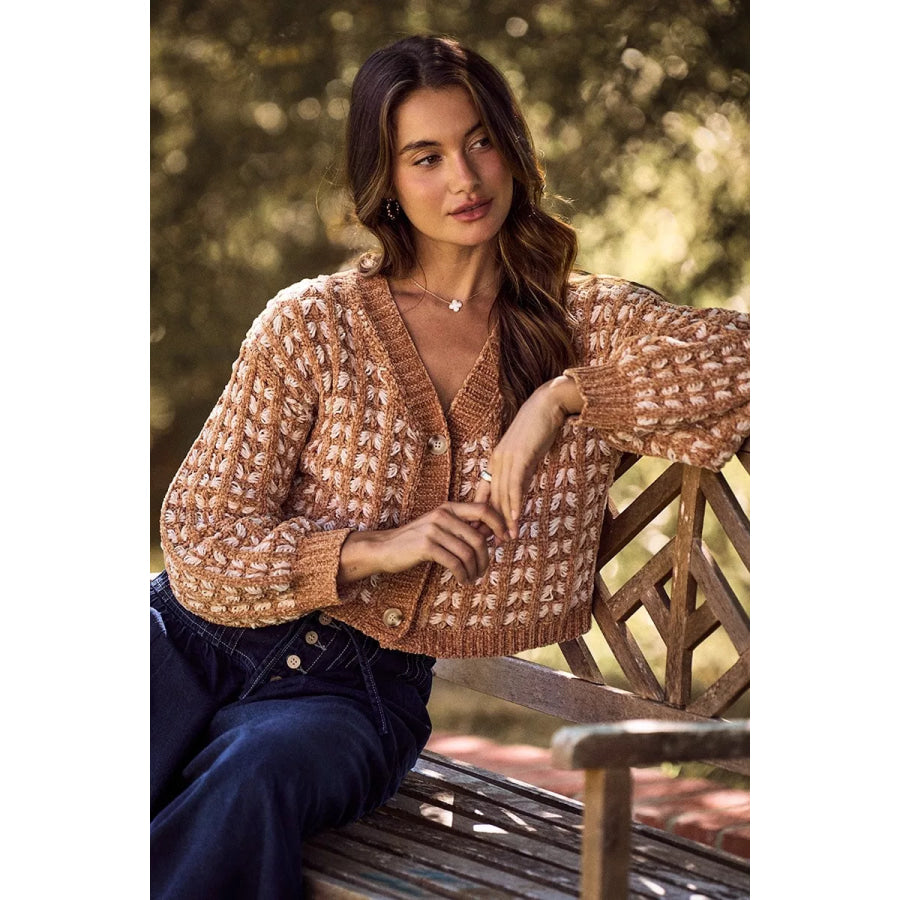 SO ME Soft Chenille Yarn Textur Button Sweater Cardigan