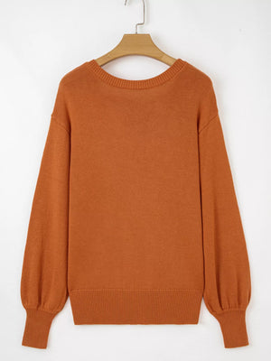 Solid Color Ribbed Trim Drop Shoulder Sweater