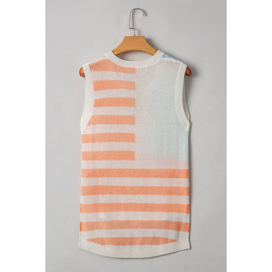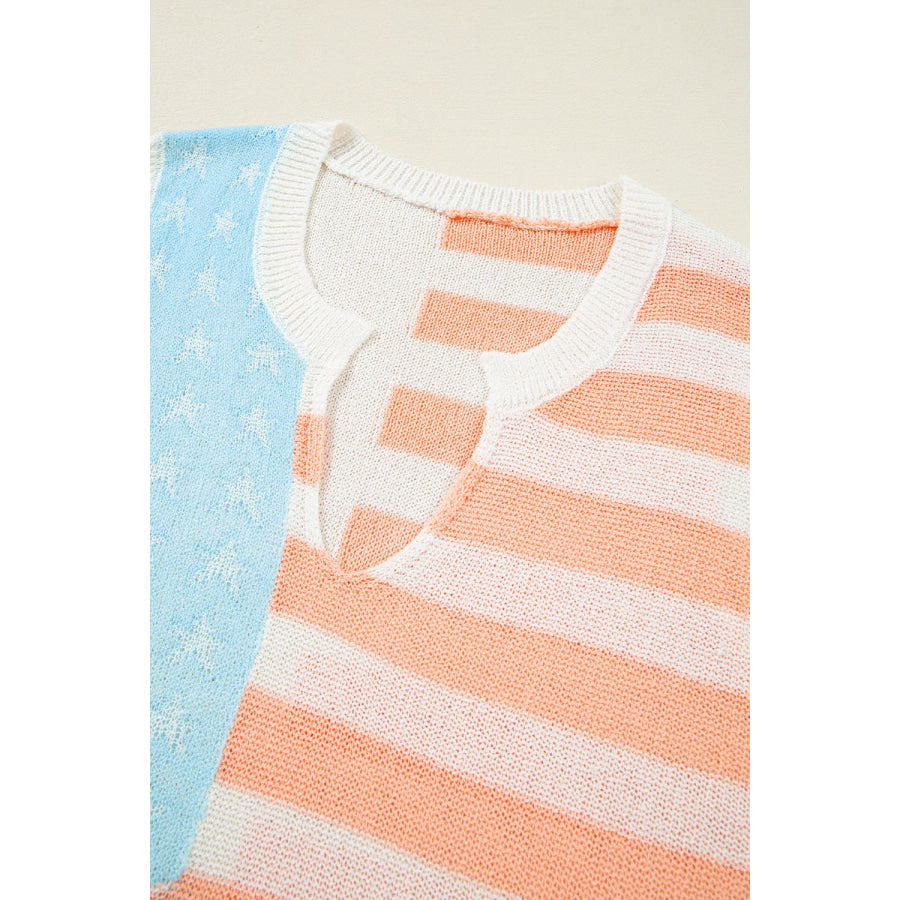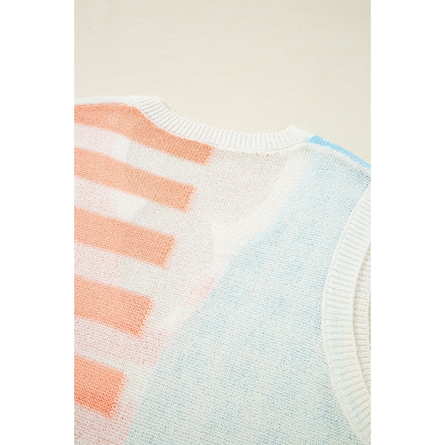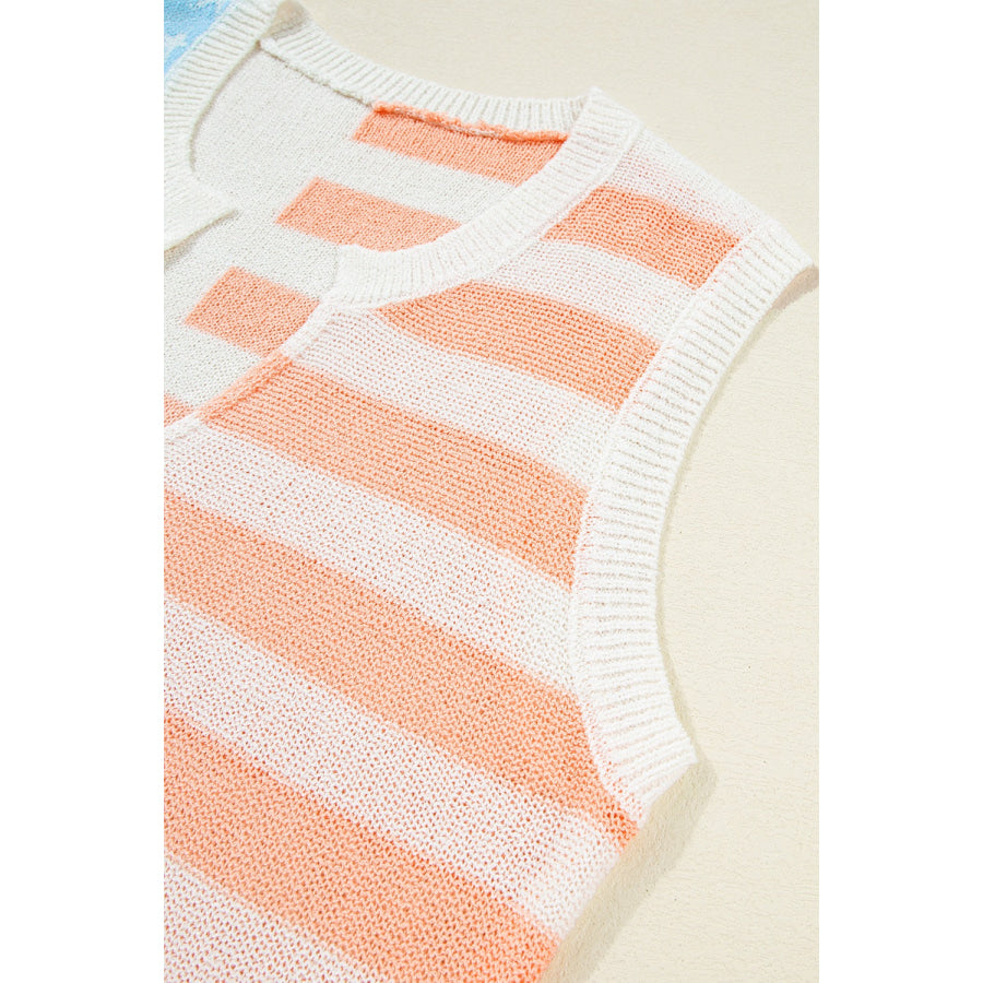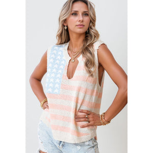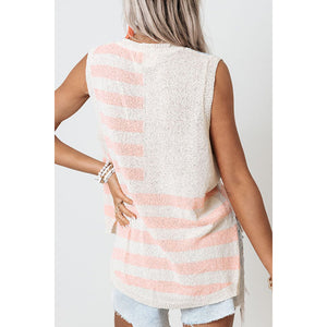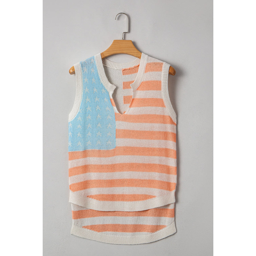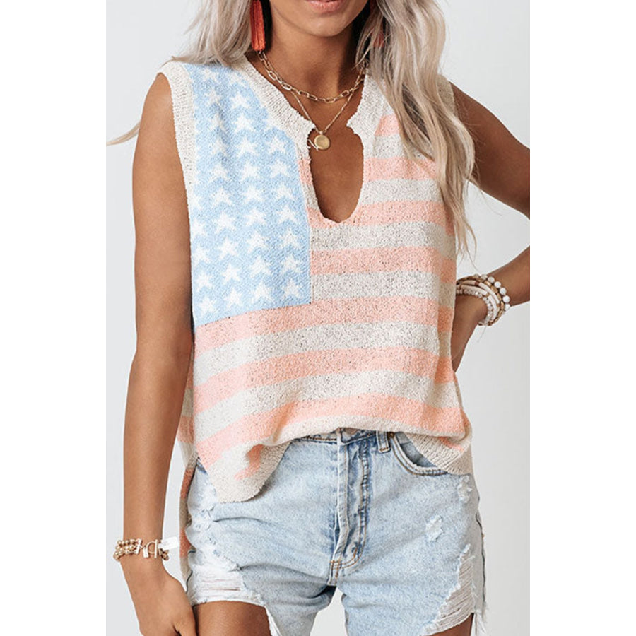 USA Flag Notched Loose Fit Sweater Vest