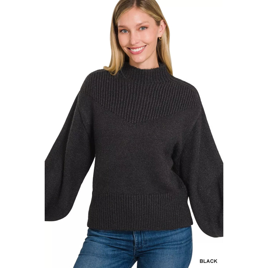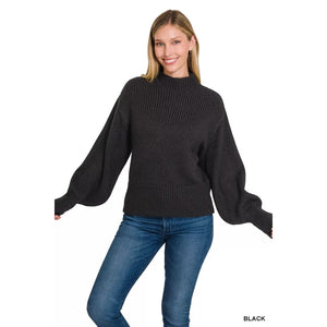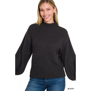 Zenana Balloon Sleeve Mock Neck Sweater