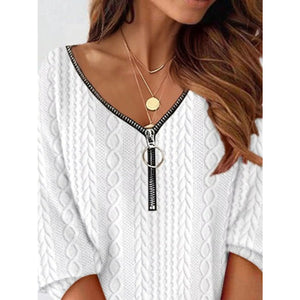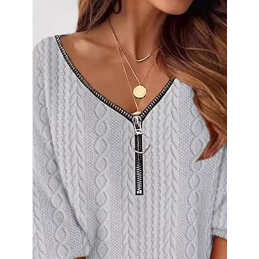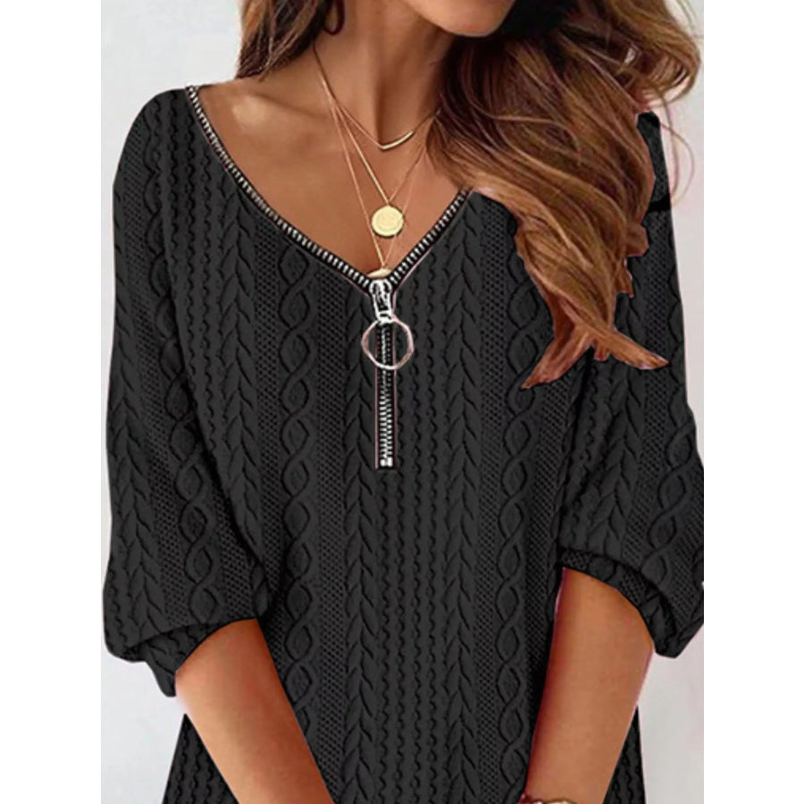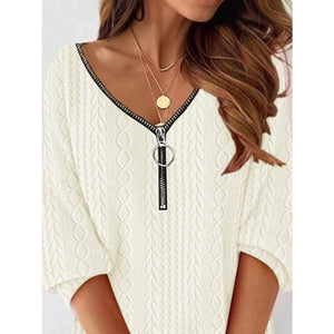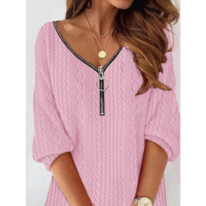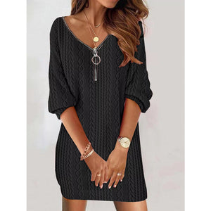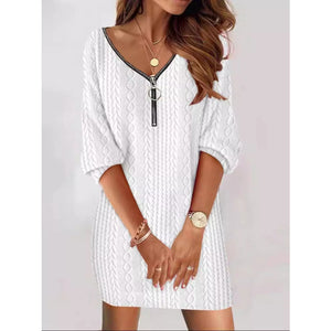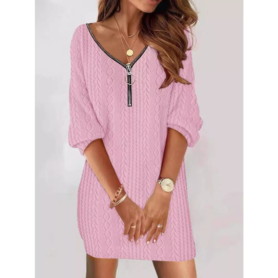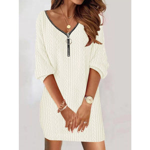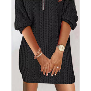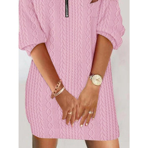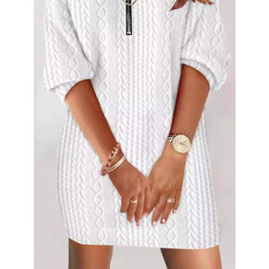 Zip Detail Textured Knit Mini Sweater