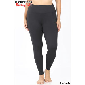 PLUS BRUSHED MICROFIBER WIDE WAISTBAND FULL LENGTH LEGGINGS WITH POCKETS