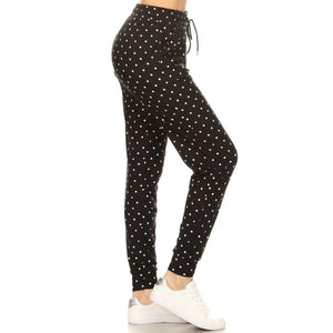 Leggings Depot Full Size Buttery Soft Polka Dot Joggers with Drawstring Plus Size