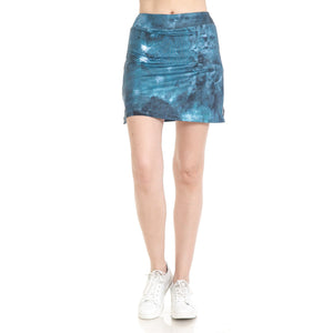 Silky Active Skort with Side Slit - Deep Blue Tie Dye