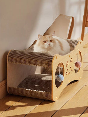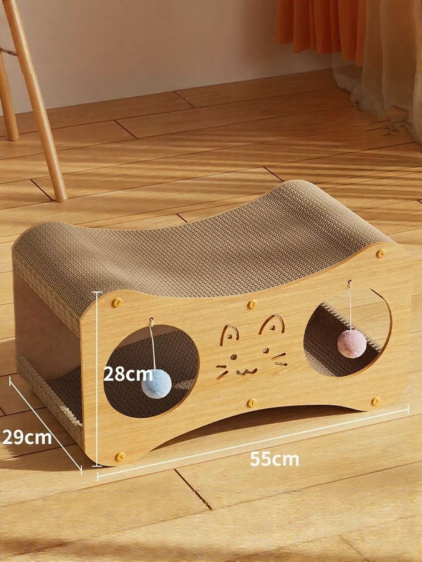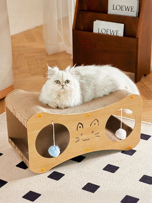 Interactive Cat Scratcher Lounge Bed with Toy Balls