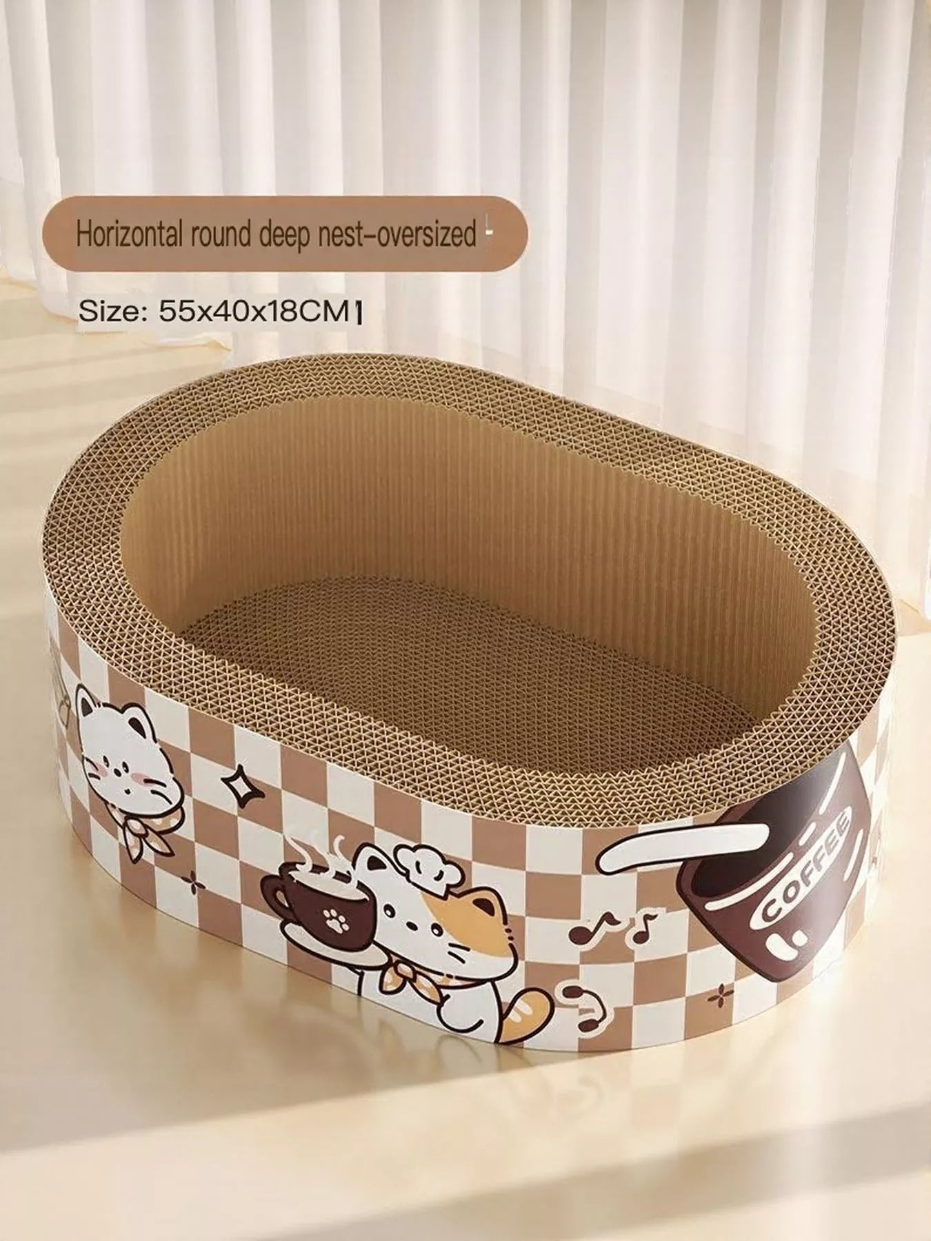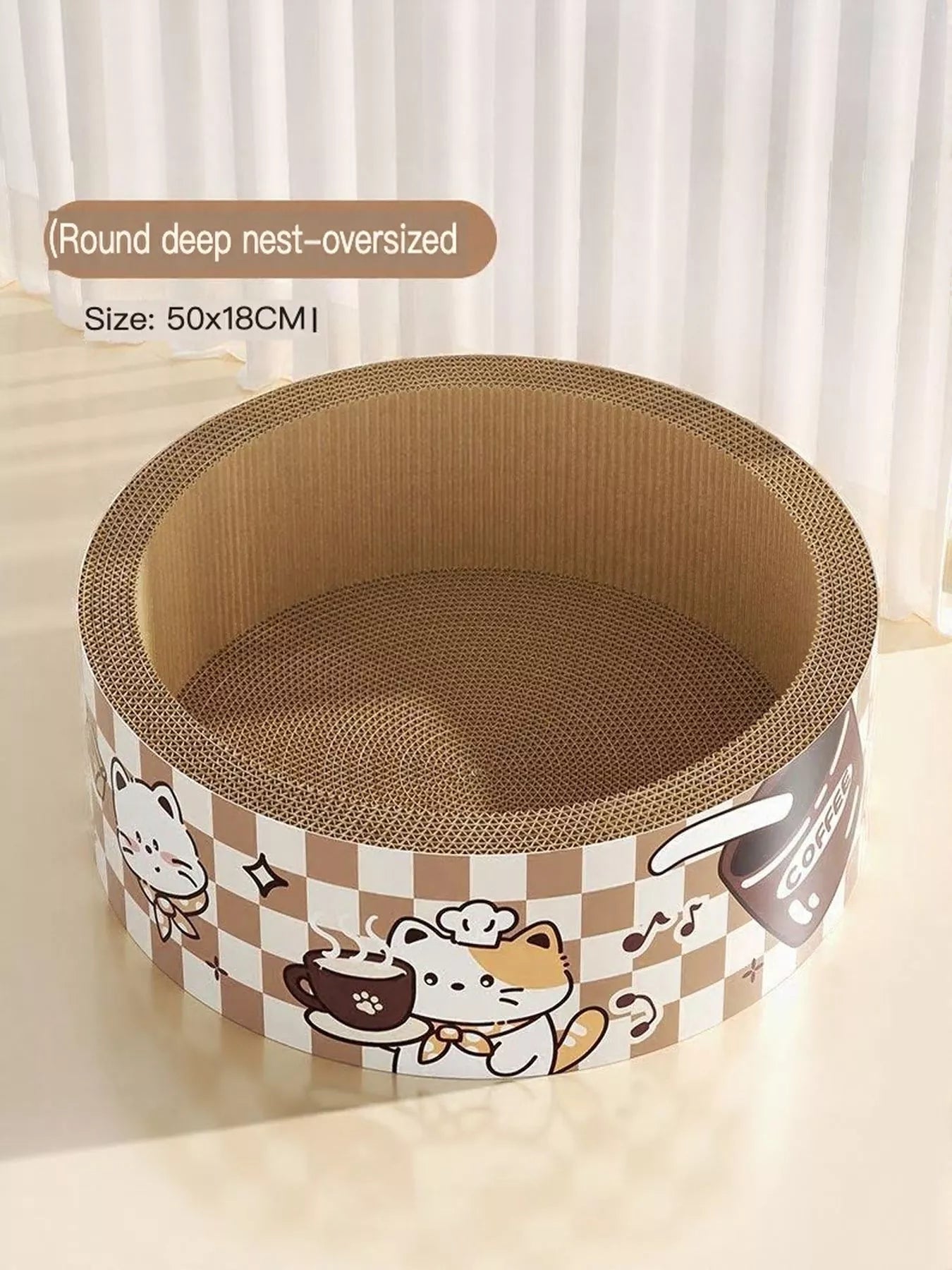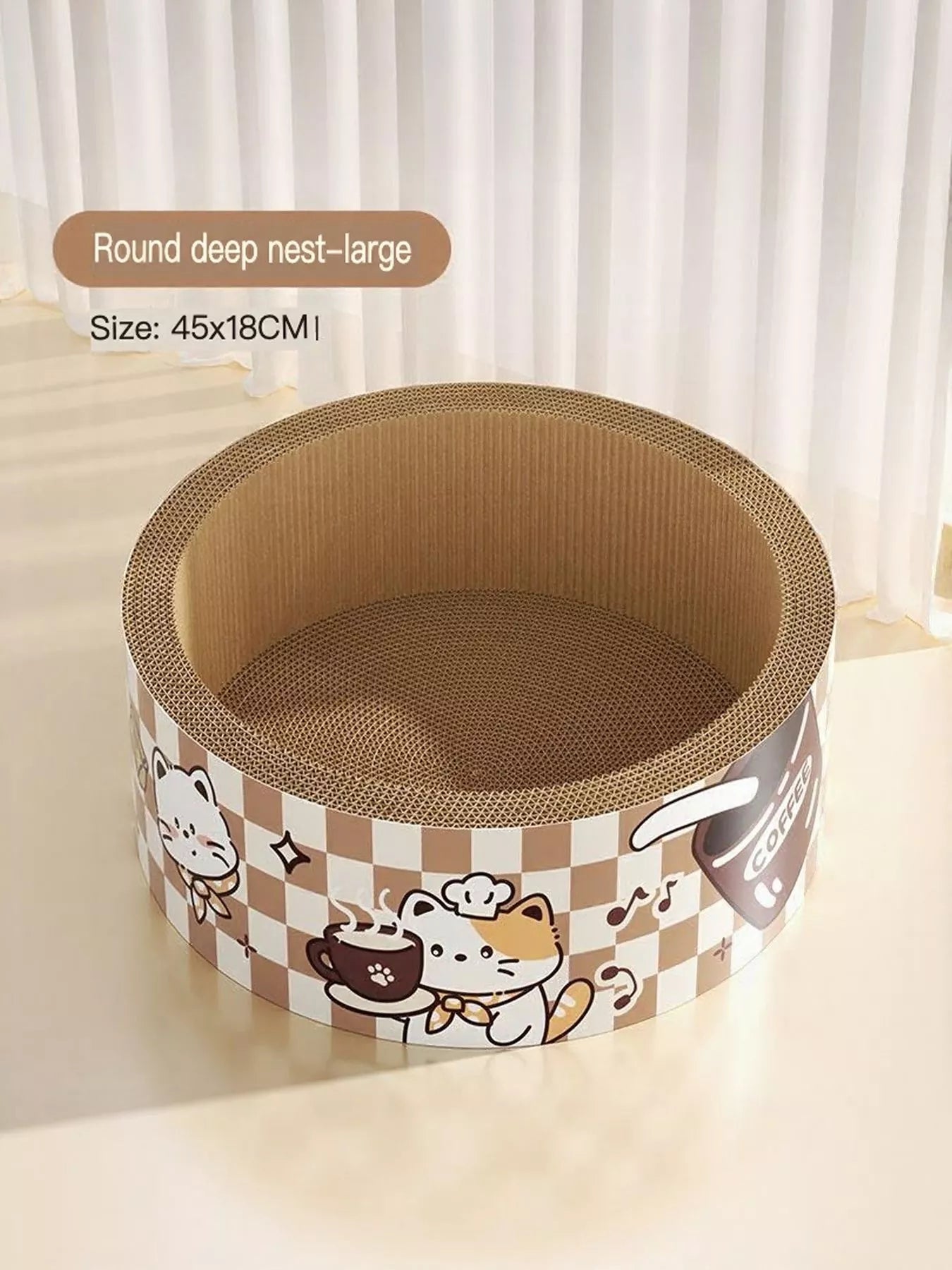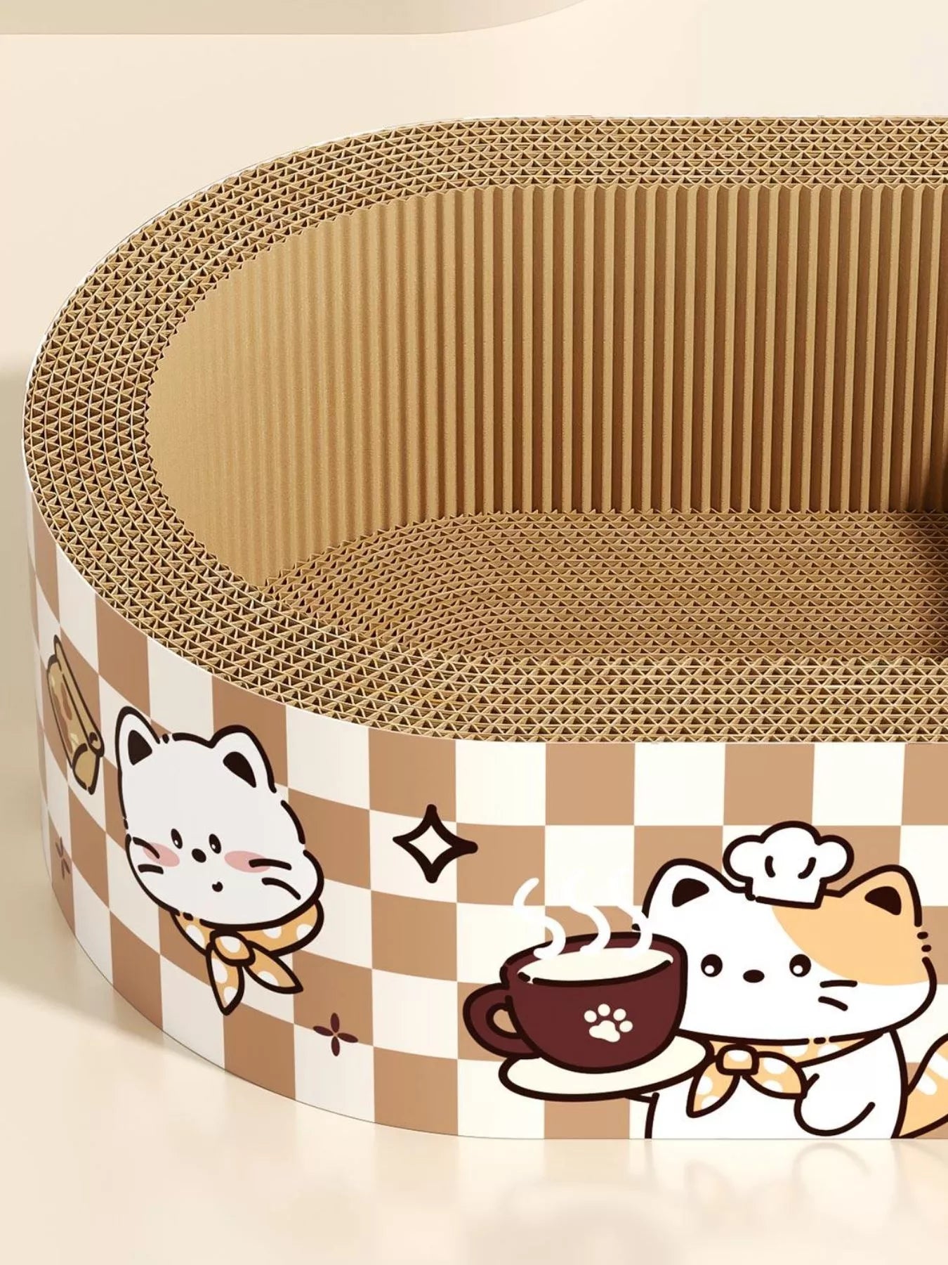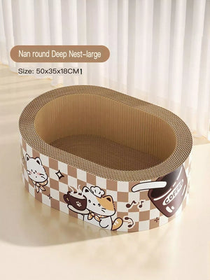 Wear-Resistant Cat Scratching Lounge Bed with Cartoon Design
