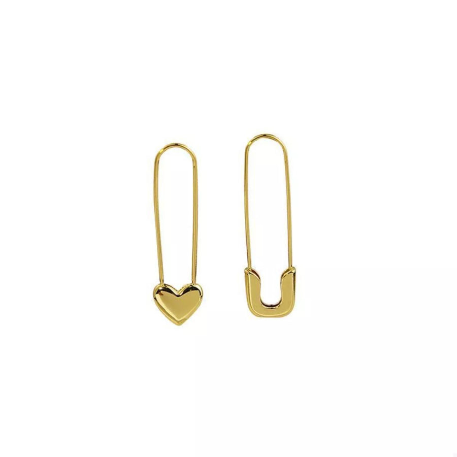 18K Gold-Plated Alloy Heart Safety Pin Drop Earrings