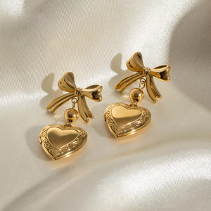 18K Gold-Plated Bow Heart Drop Earrings