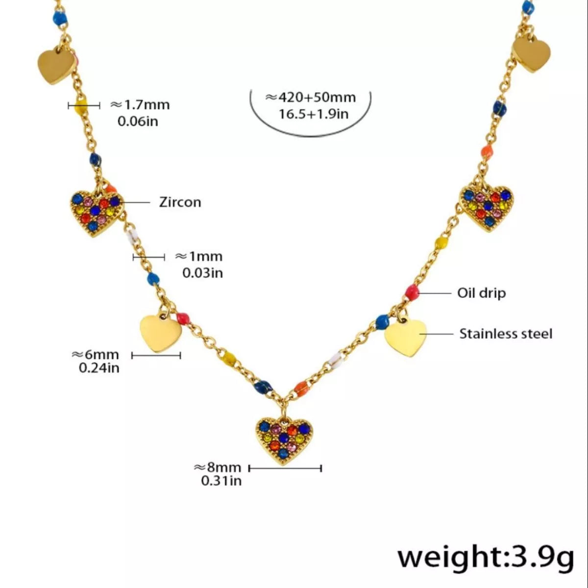 • Material:18K Gold-Plated,Stainless Steel,Zircon,Resin
