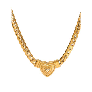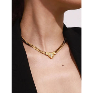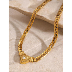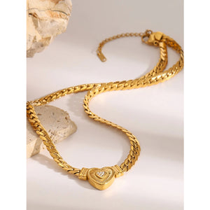 18K Gold-Plated Inlaid Zircon Heart Chain Necklace