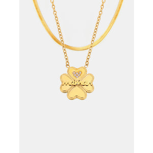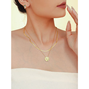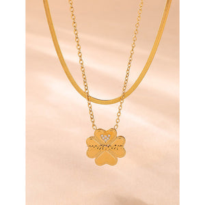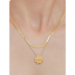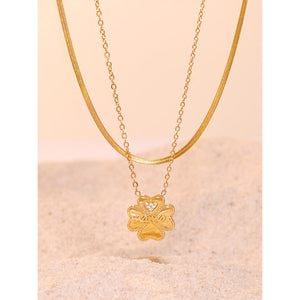 2 Piece 18K Gold-Plated Inlaid Zircon Lucky Clover Necklace
