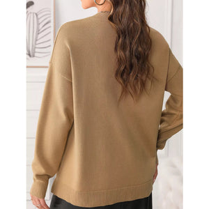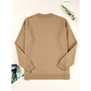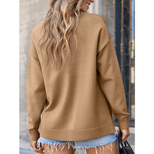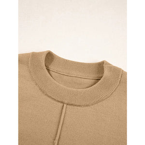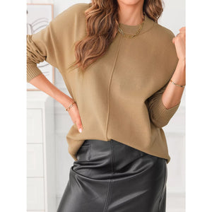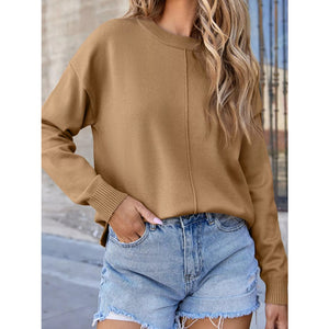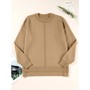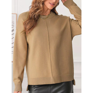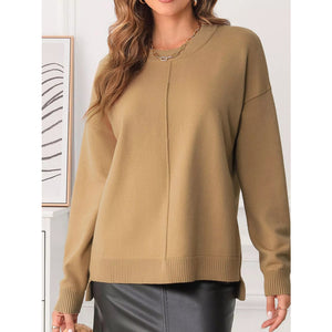 Center Seam Drop Shoulder Pullover Solid Sweater