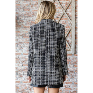 First Love Full Size Lurex Mixed Tweed One Button Blazer
