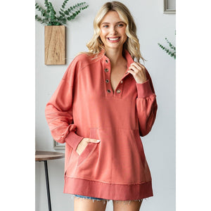 First Love Grommet Split Neck Kangaroo Pocket Sweatshirt