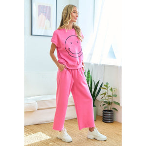First Love Smile Face Drop Shoulder Brushed Inside T-Shirt