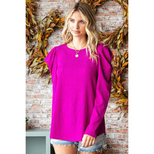 The Texture Puff Sleeve Round Neck Blouse is a chic and elegant top that adds a fashionable twist to any outfit. The texture detailing on the fabric creates a sense of depth and visual interest, while the puff sleeves add a touch of drama and femininity. The round neck design offers a classic and versatile look that can be easily dressed up or down. Whether you pair it with trousers for a sophisticated office look or wear it with jeans for a more casual outing, this blouse is sure to elevate your style game.