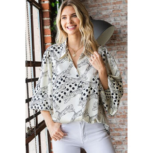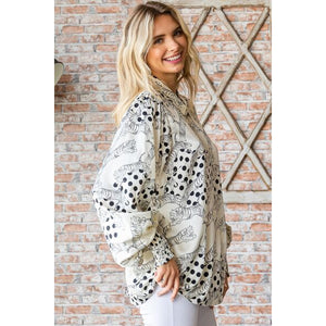 First Love Tiger Print Collared Neck Long Sleeve Satin Shirt