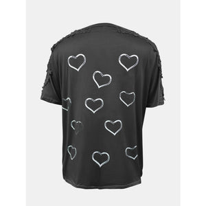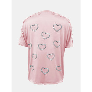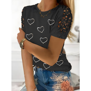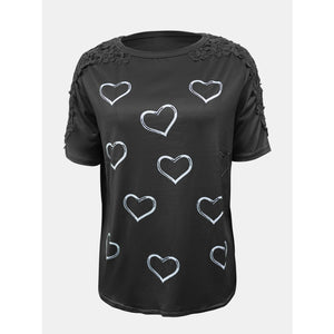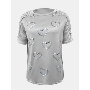 Full Size Lace Detail Heart Round Neck Short Sleeve Top